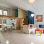Ein Eingangsbereich sorgt für Privatsphäre, und ein großes, niedriges Möbelstück bietet viel Stauraum. Ein Safe ist ebenfalls vorhanden. Sowohl der Wohnbereich als auch die Zwischendecke können zum Schlafen mit Paneelen und Vorhängen optisch abgetrennt werden.