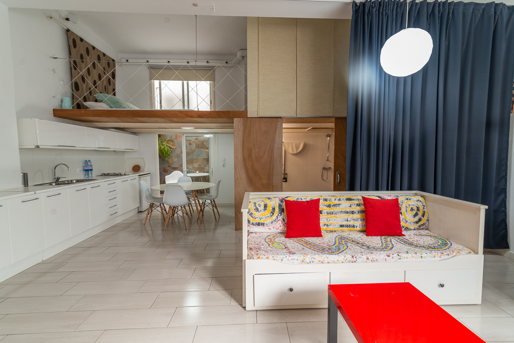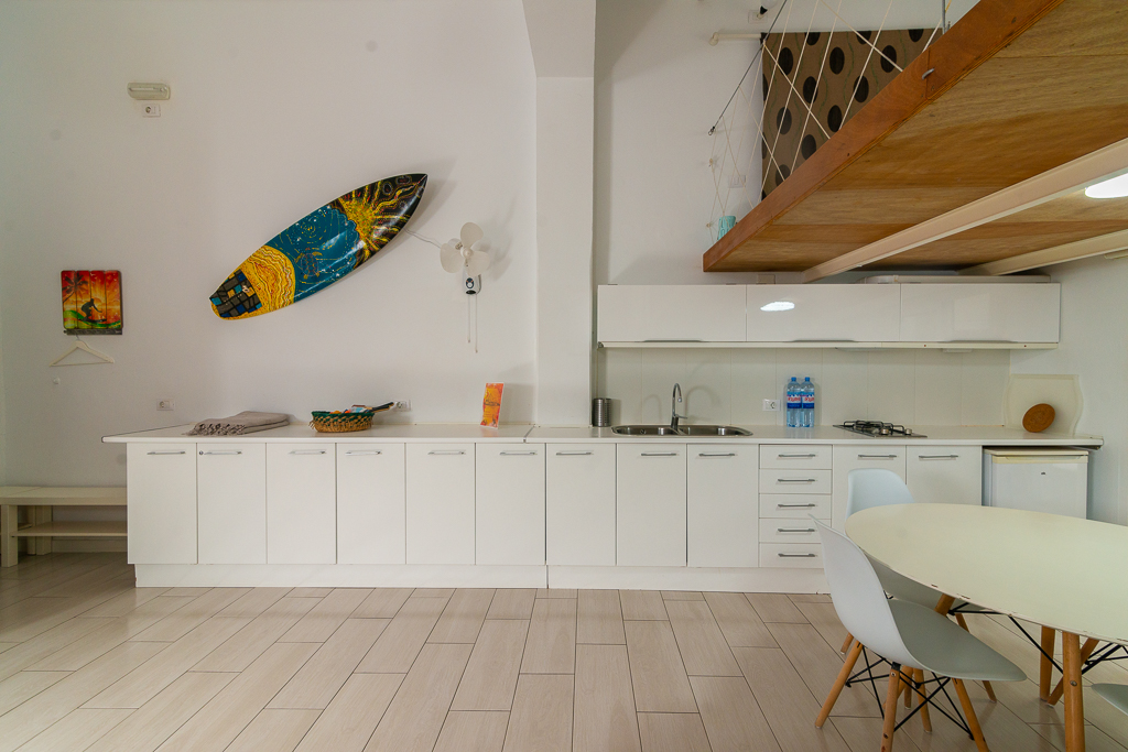 Luminoso espacio de doble altura, completamente renovado y a estrenar, a 2 minutos de la Playa de Las Canteras, perfectamente equipado y en la planta baja, con entrada directa y accesible para personas con movilidad reducida. La altura libre bajo la entreplanta es de solo 1,84 metros (6 pies).