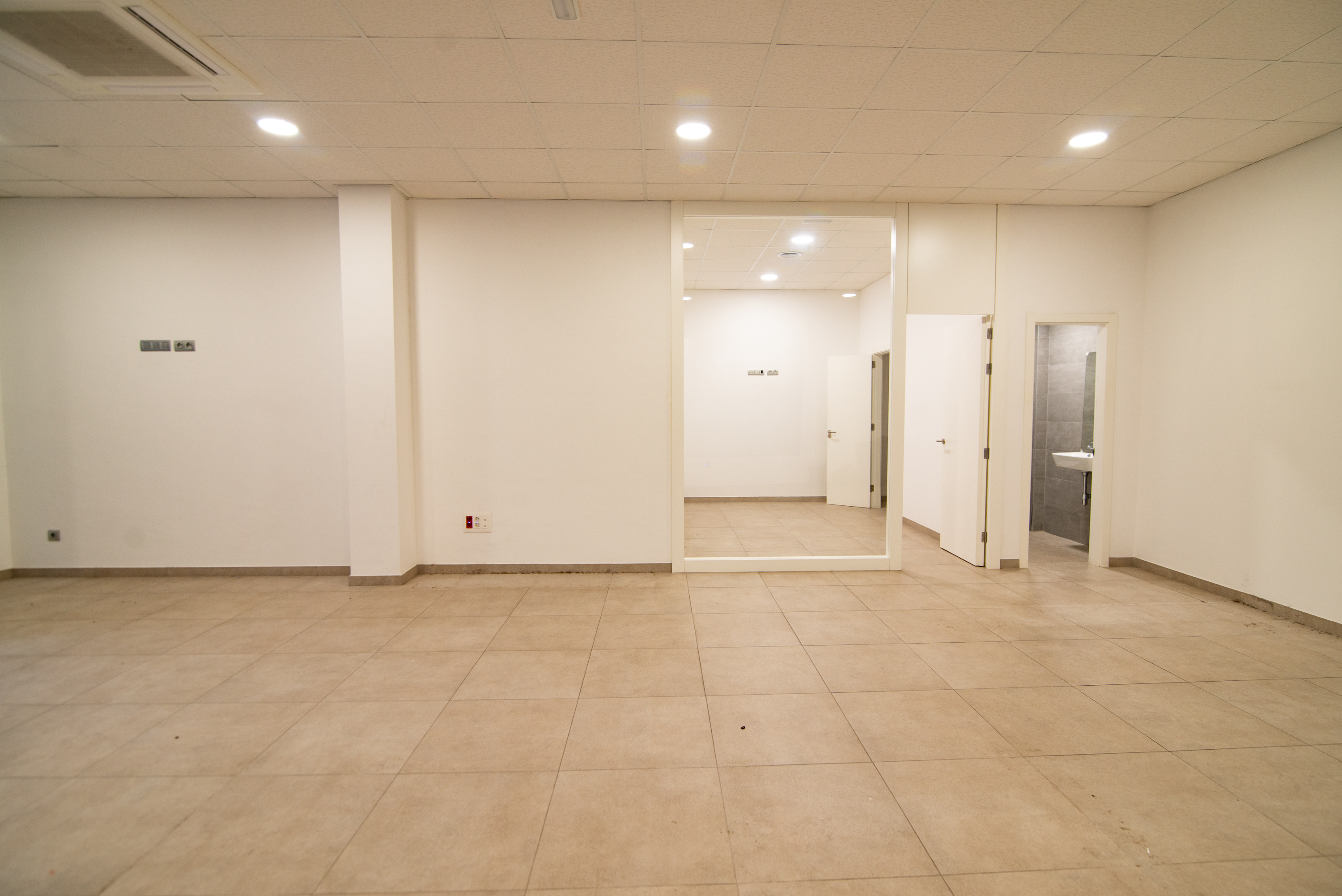 Consta de 63m2 útiles distribuidos en una estanca principal diáfana, despacho independiente con separación por cristalera con aislamiento acústico y baño tipo aseo. Cuenta con aire condicionado, instalación eléctrica actualizada, techos registrables, amplia cristalera en fachada de 3,82 metros de largo. En perfecto estado, colinda con una peluquería y una lavandería, la última actividad fue un estudio de arquitectura.