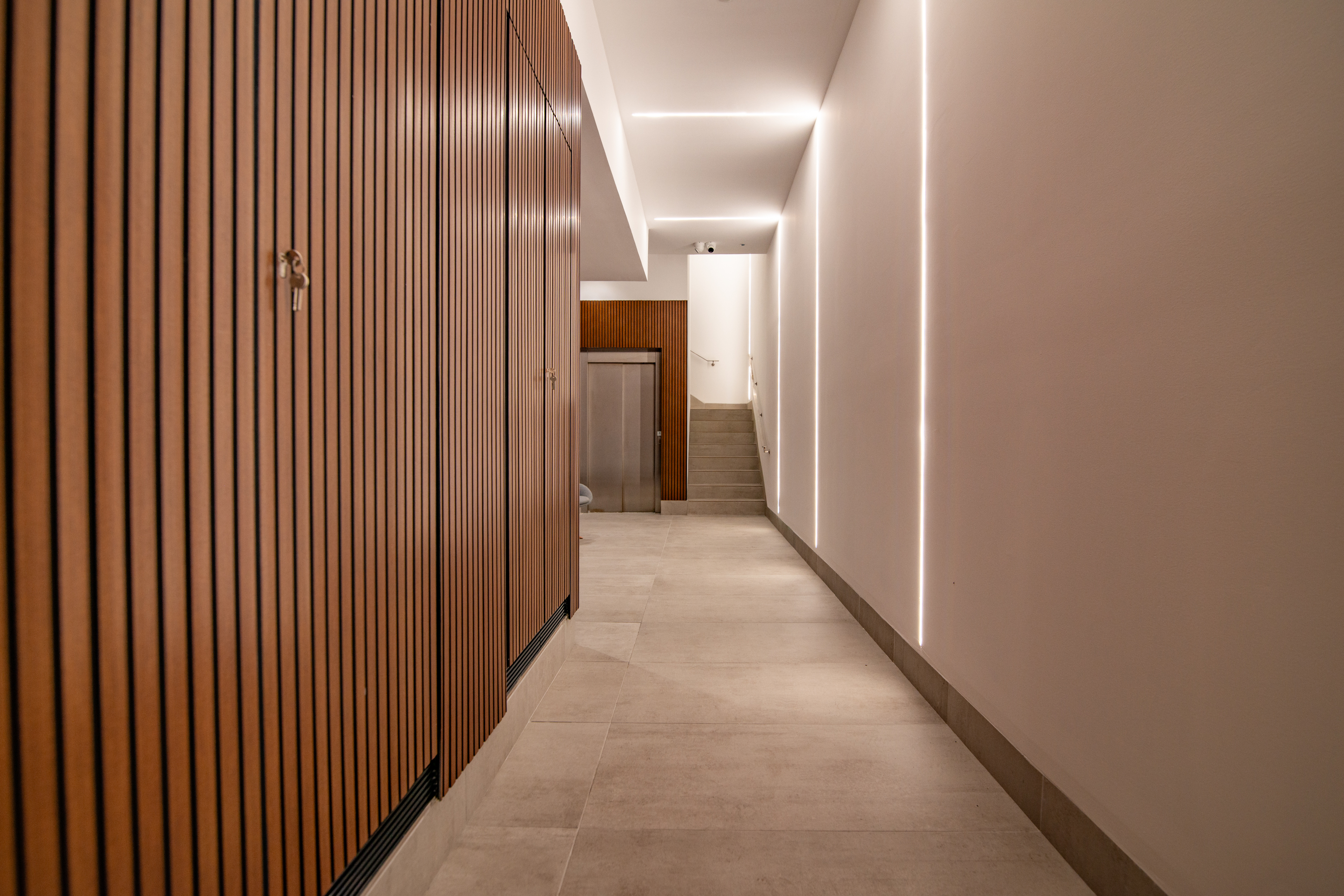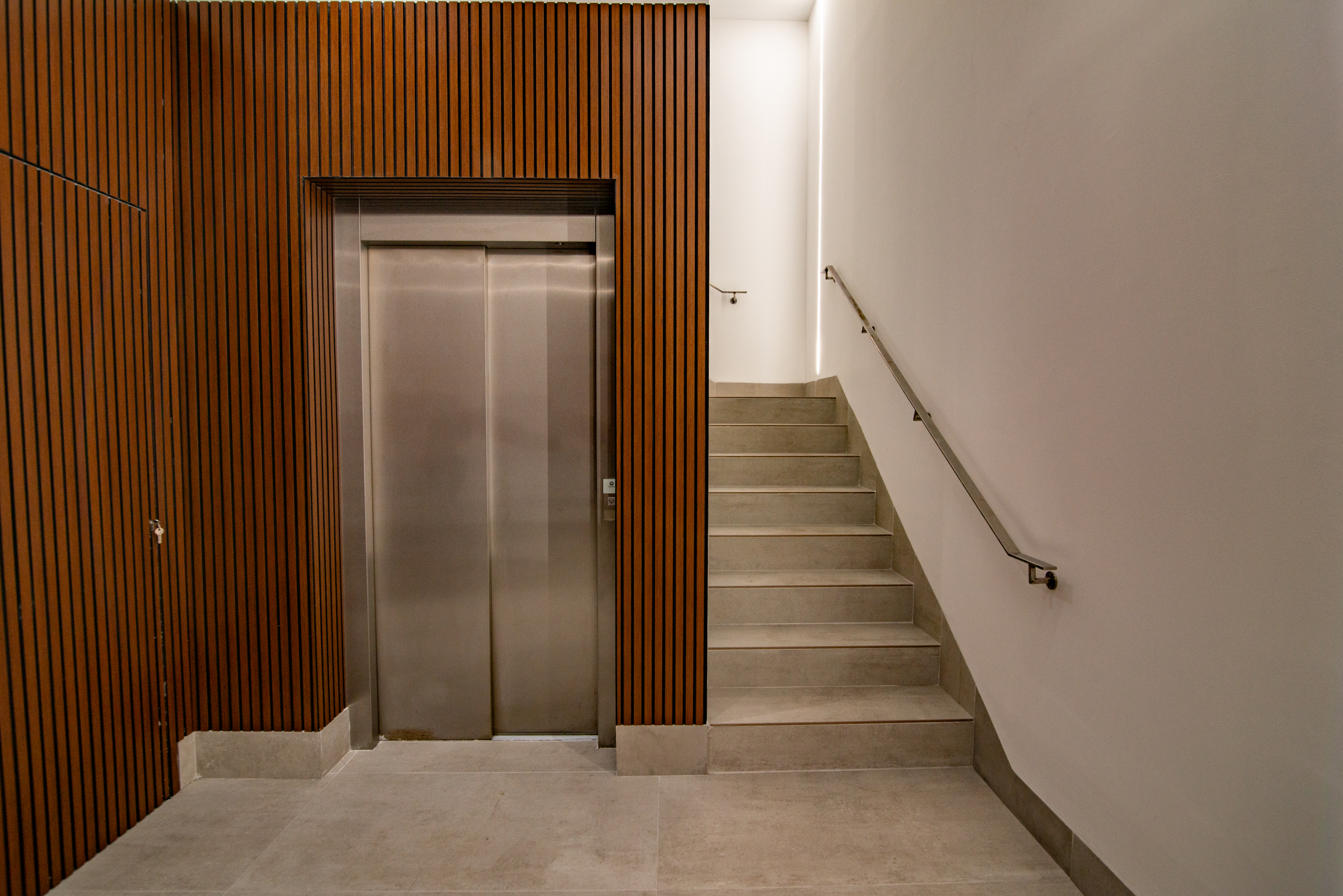 Acceso al edificio a pie de calle sin barreras arquitectónicas, ascensor para seis personas, cámara de video vigilancia en el portal de entrada. Consigna y almacén para clientes.