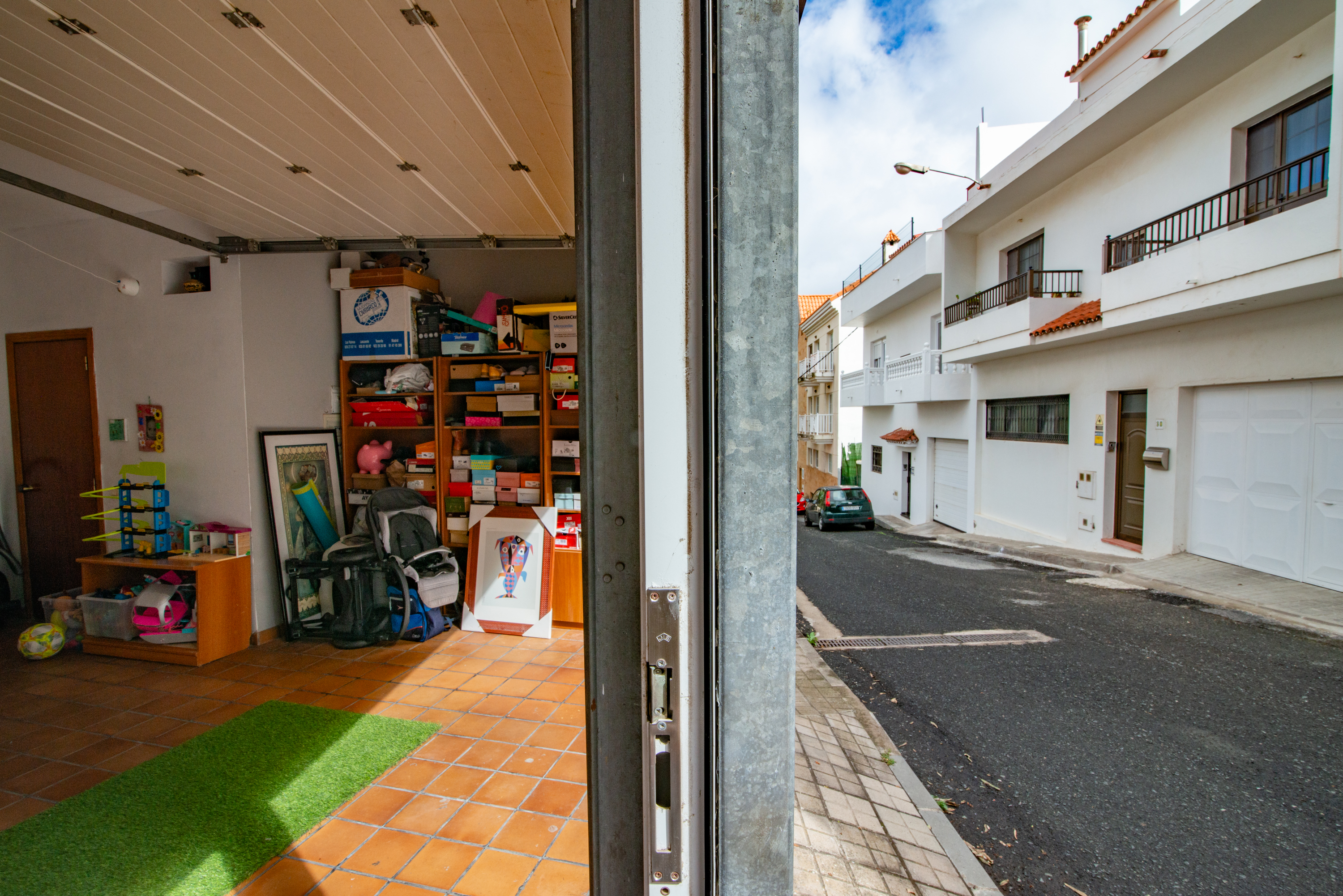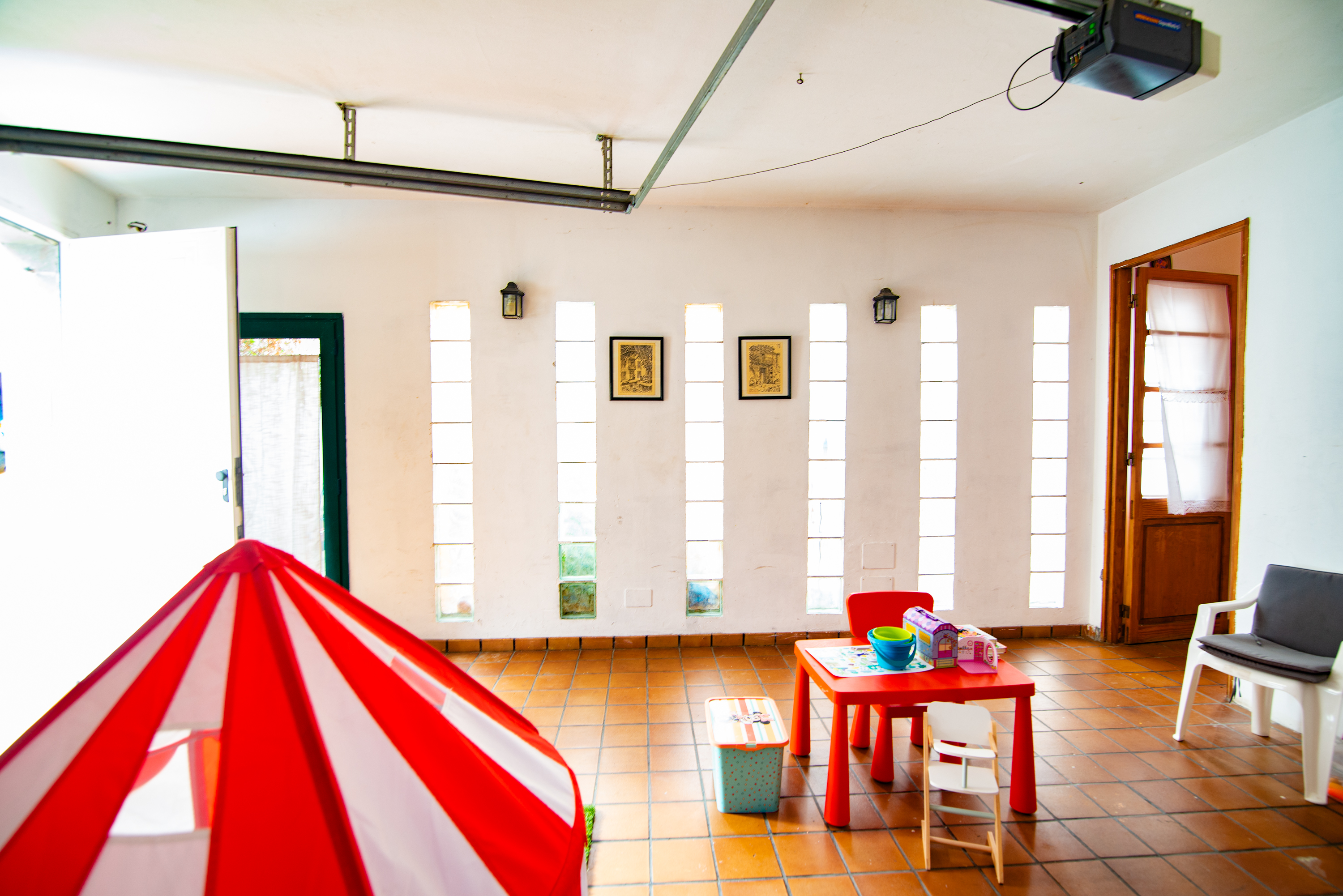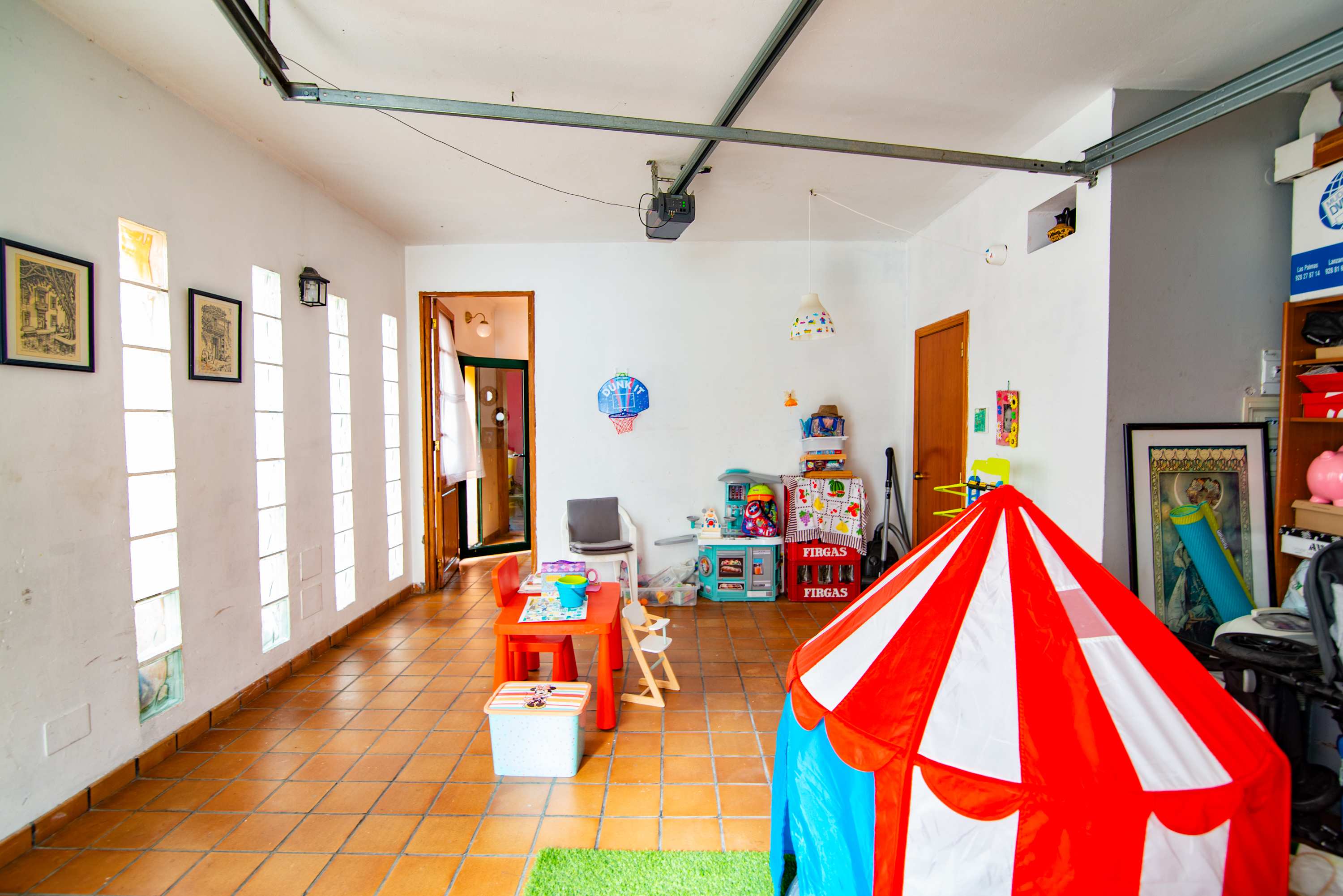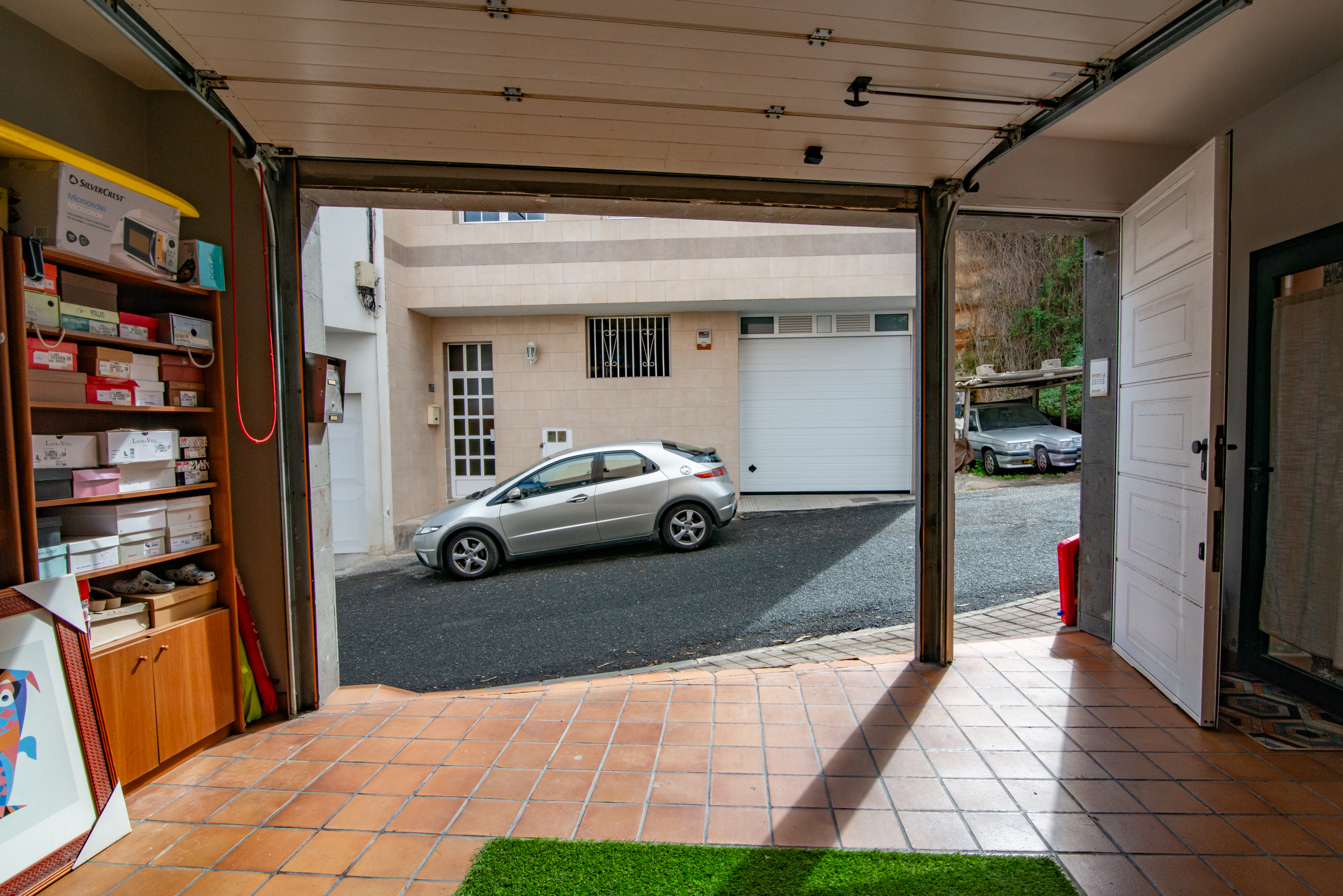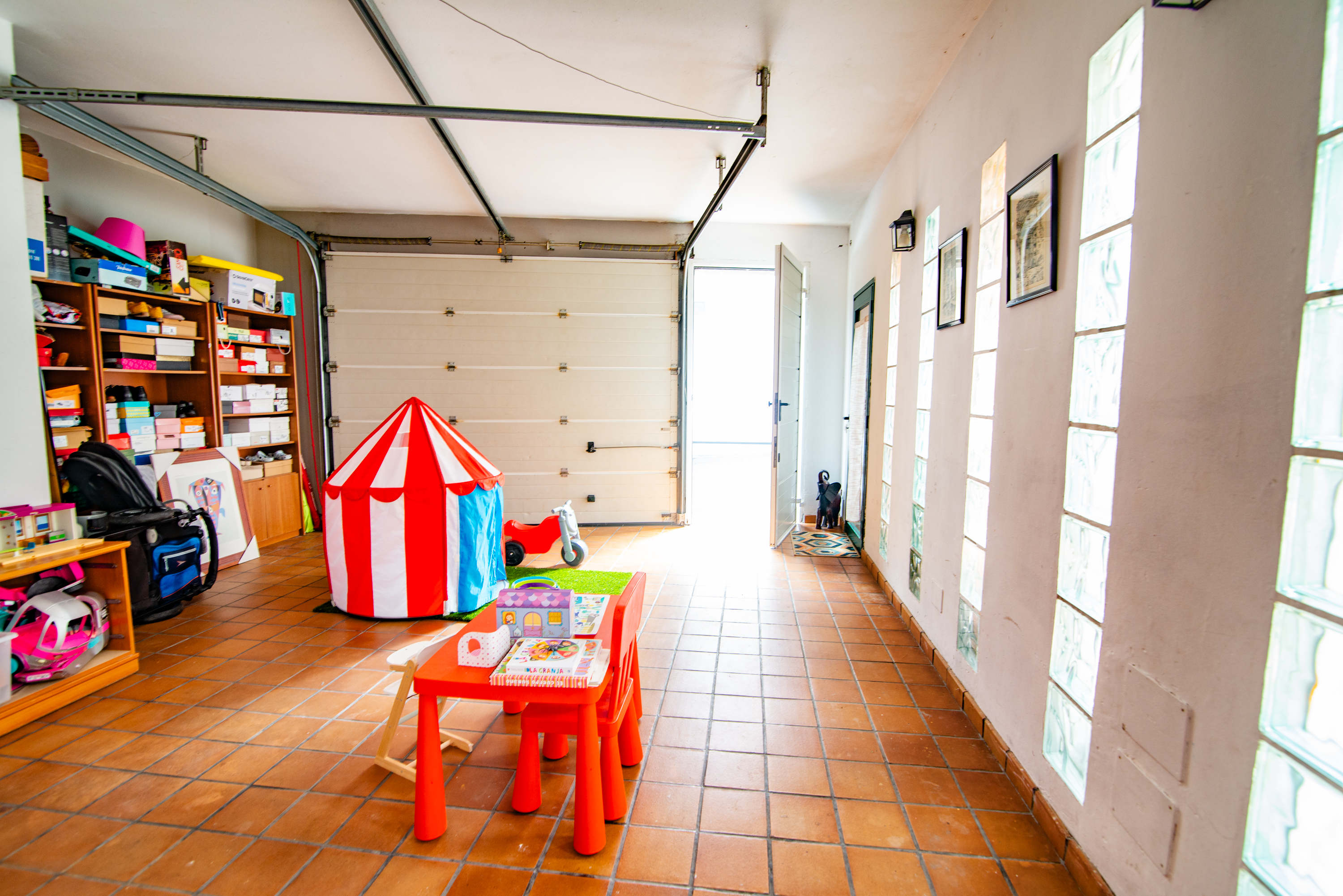 - Spacious garage with capacity for two vehicles and automatic door.